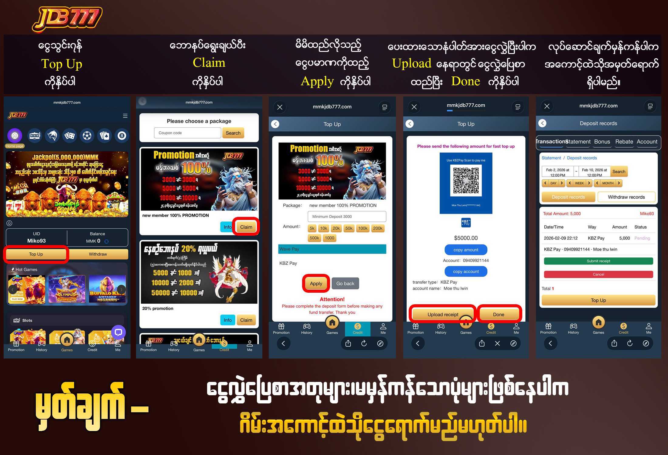 5,000သွင်း + 5,000 (ဘောနပ် 100%) =10,000 ရ